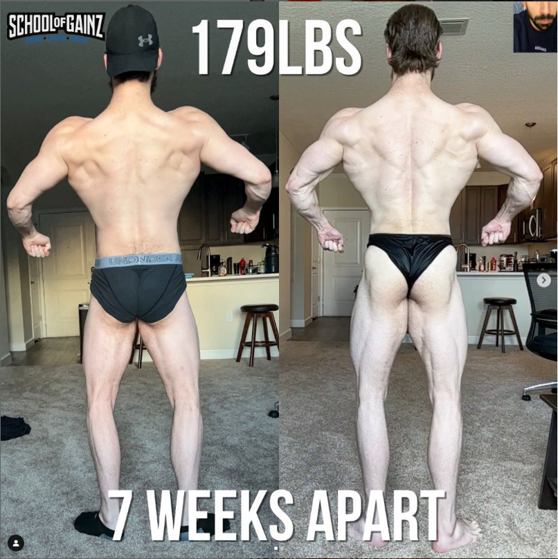 The picture on the right side was the end product after 7 weeks of training with those modifications. Nutritionally, that entire time was spent at PSMF numbers (protein sparring modified fast) with a periodic refeed to keep performance high, so this clearly wasn’t just a difference of being flat versus full.